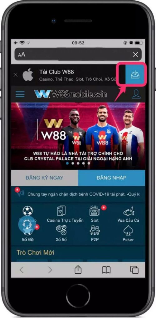 Bước 2: Tại góc trên bên phải màn hình, bạn sẽ thấy một biểu tượng tải W88 iOS. Hãy nhấn vào đó. Sau đó, chọn biểu tượng của nhà cái W88 hiển thị trên màn hình.
