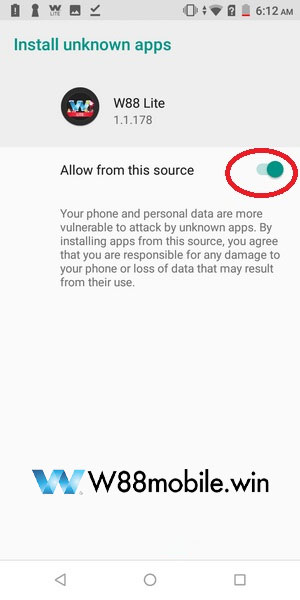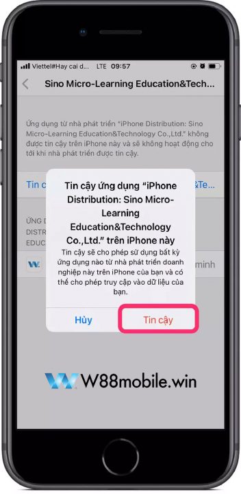 Hãy chọn “Tin Cậy” để hoàn tất việc tải app W88